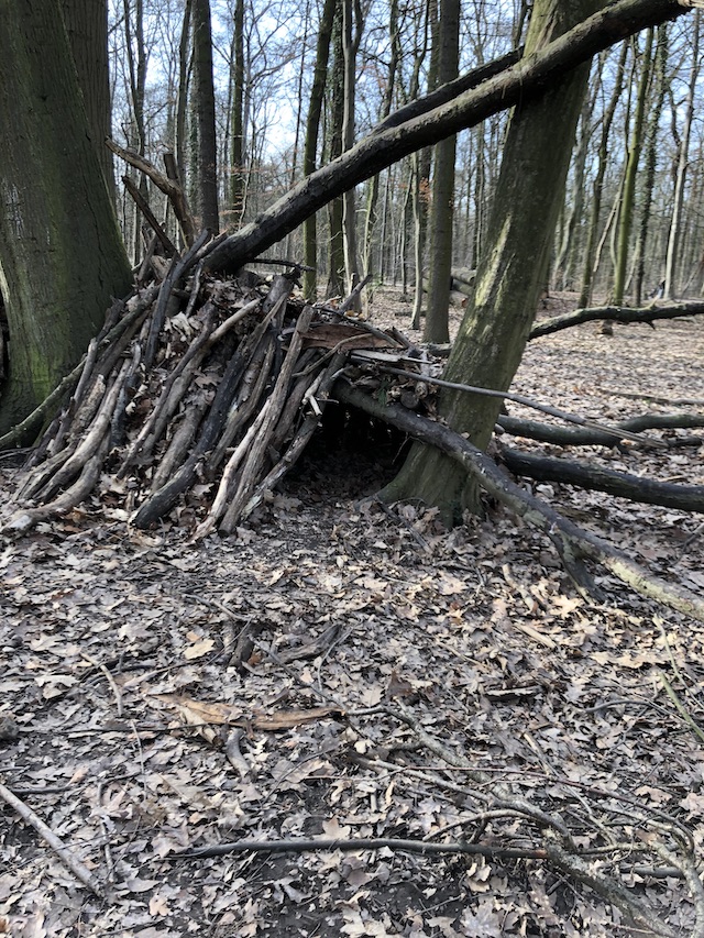 Der Heilerbau ist aus Ästen und Ranken gebaut.